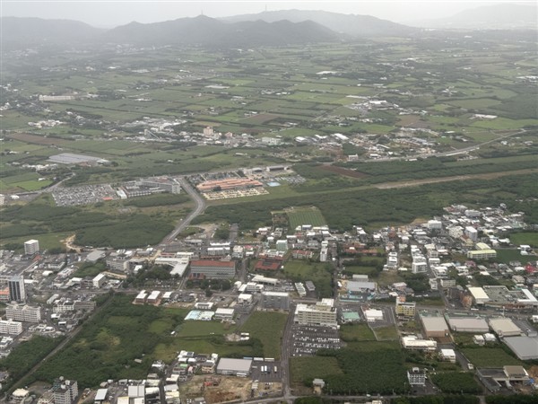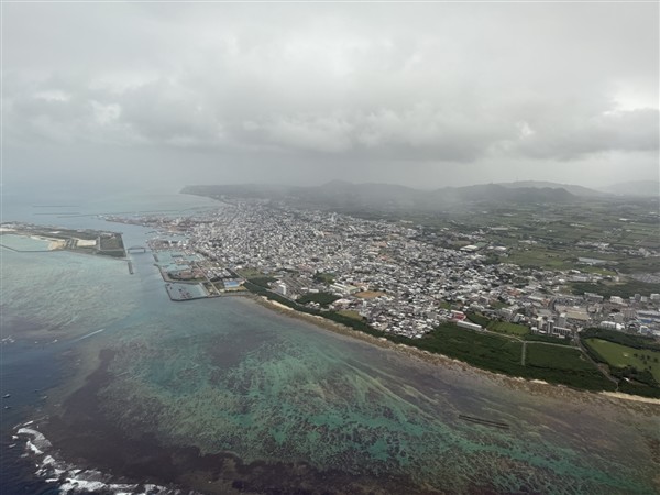 見えますのが旧石垣空港です、現在は市役所と消防署、左側には病院もあります