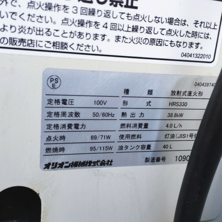 他の画像を見る オリオン機械 HRS330 38.8kW ジェットヒーター BRITE スイング式 単相100V 愛知店 中古品(B) 販売価格 ¥ 55,000 税込 在庫切れ 詳細を見る お気に入りに登録する