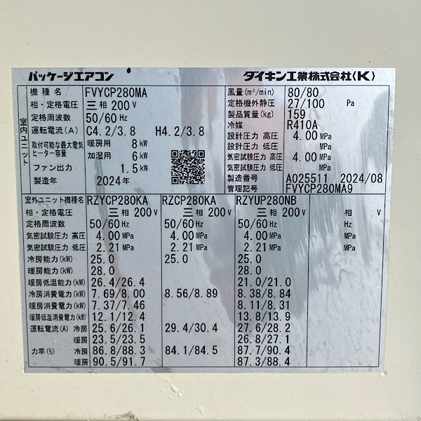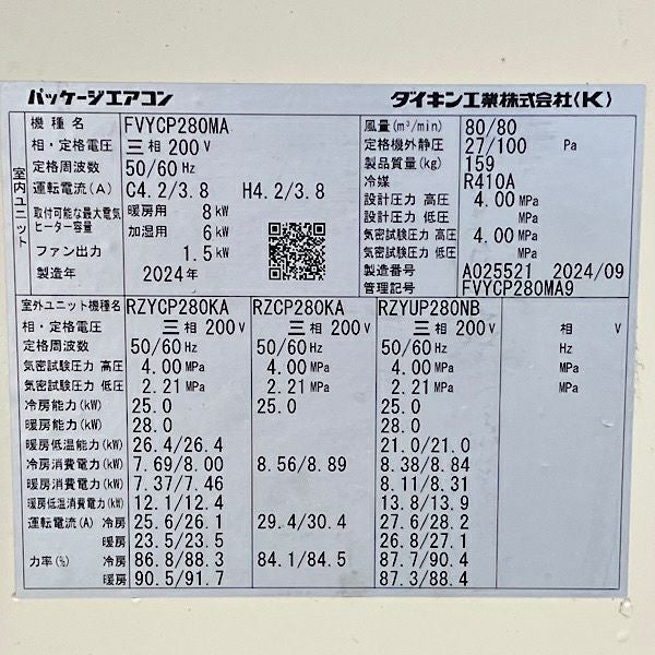 他の画像を見る DAIKIN/ダイキン 業務用マルチエアコン 床置きダクト形 10馬力 FVYCP280MA/RXTP280DC 2024年製 中古品● 大阪店 中古品(B) 販売価格 ¥ 495,000 税込 カートに入れる お気に入りに登録する