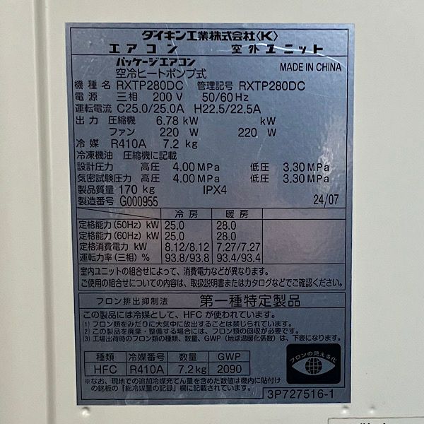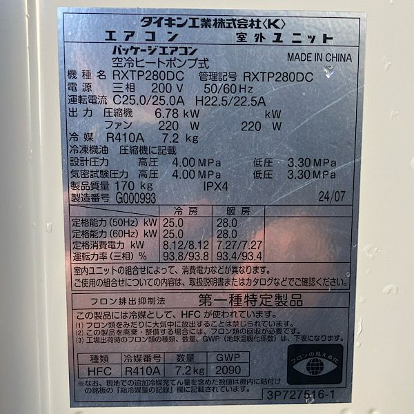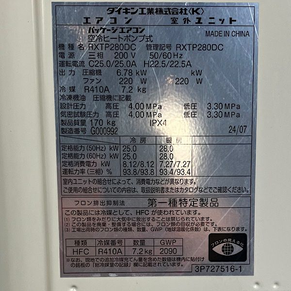 他の画像を見る 【未使用品】ダイキン RQTP80A マルチ用室外機 業務用エアコン 3馬力 2025年製※室外機のみ ●119140 大阪店 未使用品(AA) 販売価格 ¥ 101,200 税込 カートに入れる お気に入りに登録する