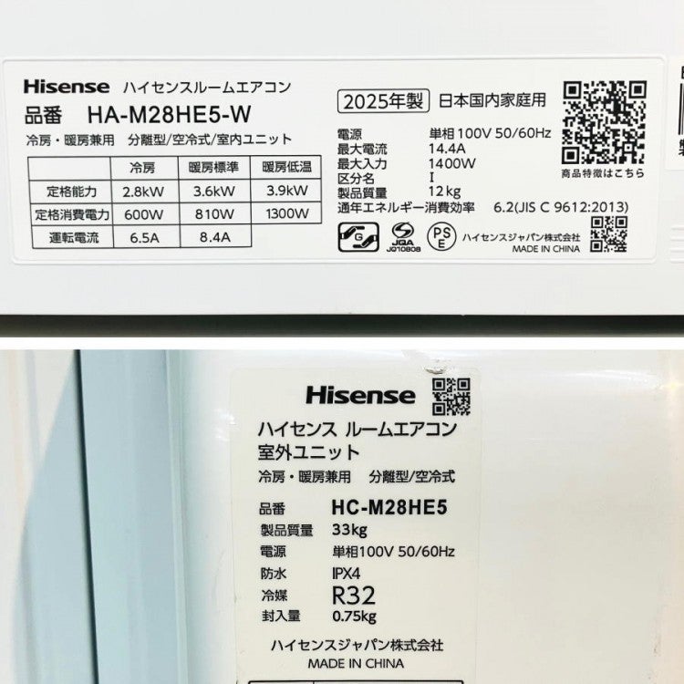 他の画像を見る Hisense/ハイセンス 10畳用 ルームエアコン 単相100V 室内機HA-M28HE5-WS 室外機HC-M28HE5 愛知店 引取限定! 中古品(A) 販売価格 ¥ 41,800 税込 カートに入れる お気に入りに登録する