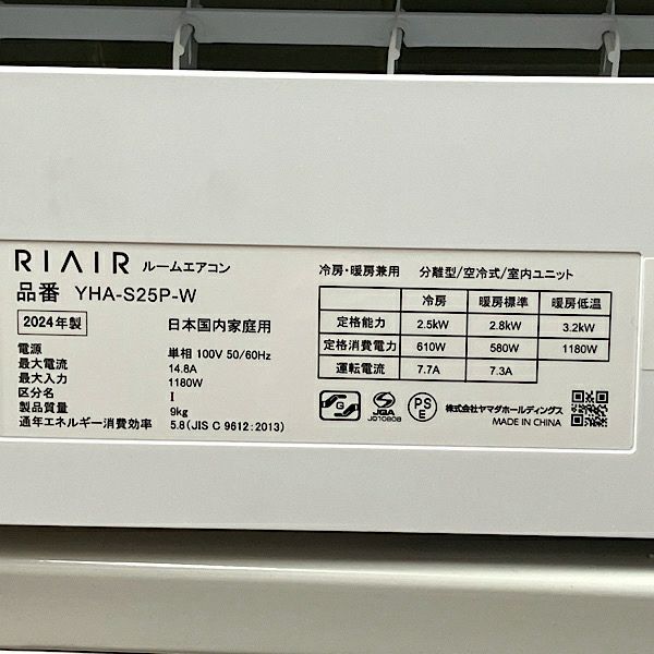 他の画像を見る YAMADA/ヤマダオリジナル ルームエアコン YHA-S25P-W 8畳用 2.5kW リエラ 単相100V 2024年 大阪店 引取限定! 未使用品(AA) 販売価格 ¥ 45,100 税込 在庫切れ 詳細を見る お気に入りに登録する