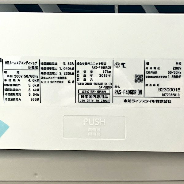他の画像を見る TOSHIBA/東芝 ルームエアコン 4.0kW 14畳用 単相200V RAS-F406DR 2019年 大阪店 引取限定! 中古品(B) 販売価格 ¥ 59,400 税込 在庫切れ 詳細を見る お気に入りに登録する