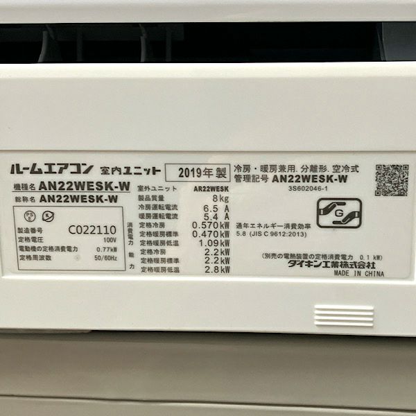 他の画像を見る DAIKIN/ダイキン 2.2kW 6畳用 AN22WESK-W 2019年単相100V 大阪店 引取限定! 中古品(B) 販売価格 ¥ 30,800 税込 在庫切れ 詳細を見る お気に入りに登録する