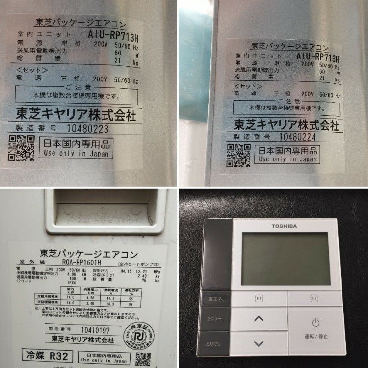 他の画像を見る 東芝 MMU-AP717H MMY-MAP2806HR 10馬力 ビル用マルチエアコン 天カセ 室内機4台/室外機1台 愛知店 引取限定! 中古品(A) 販売価格 ¥ 242,000 税込 カートに入れる お気に入りに登録する