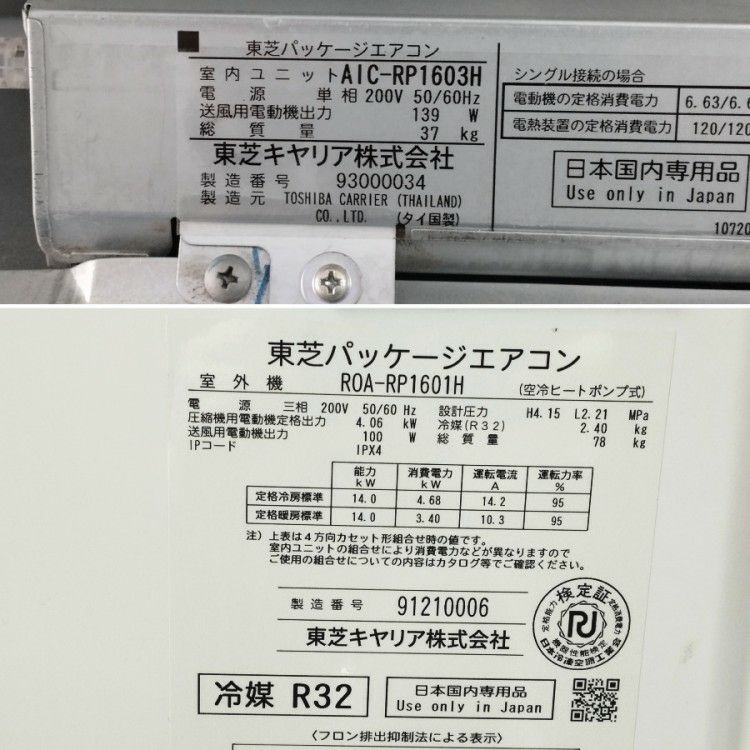 他の画像を見る 東芝 RCEA16031M 2019年製 6馬力天吊エアコン AIC-RP1603H ROA-RP1601H 16.0kW 愛知店 中古品(B) 販売価格 ¥ 165,000 税込 在庫切れ 詳細を見る お気に入りに登録する