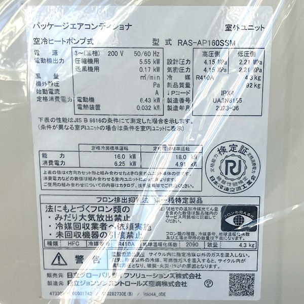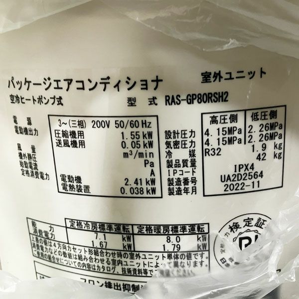 他の画像を見る 日立 パッケージエアコン 天埋め型 3馬力 RPI-GP80K3/RAS-GP80RSH2 三相200V 2022年製 業務用エアコン 大阪店 引取限定! 未使用品(AA) 販売価格 ¥ 165,000 税込 カートに入れる お気に入りに登録する