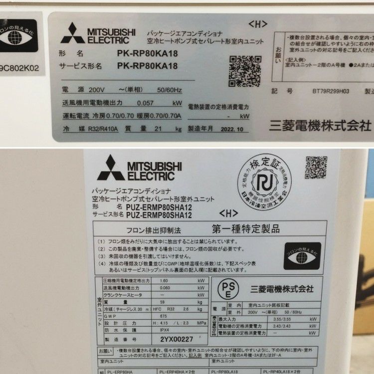 他の画像を見る 三菱電機 PKZ-ERMP80SK2 2022年製 3馬力壁掛けエアコン 単相200V仕様 PK-RP80KA18 PUZ-ERMP80SHA12 愛知店 引取限定! 中古品(B) 販売価格 ¥ 143,000 税込 カートに入れる お気に入りに登録する