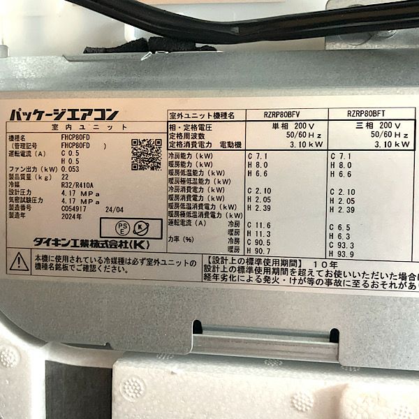 他の画像を見る ダイキン SZRH80BYT 2024年製 3馬力 天吊エアコン FHP80FB RZRP80BYT 愛知店 中古品(A) 販売価格 ¥ 170,500 税込 カートに入れる お気に入りに登録する