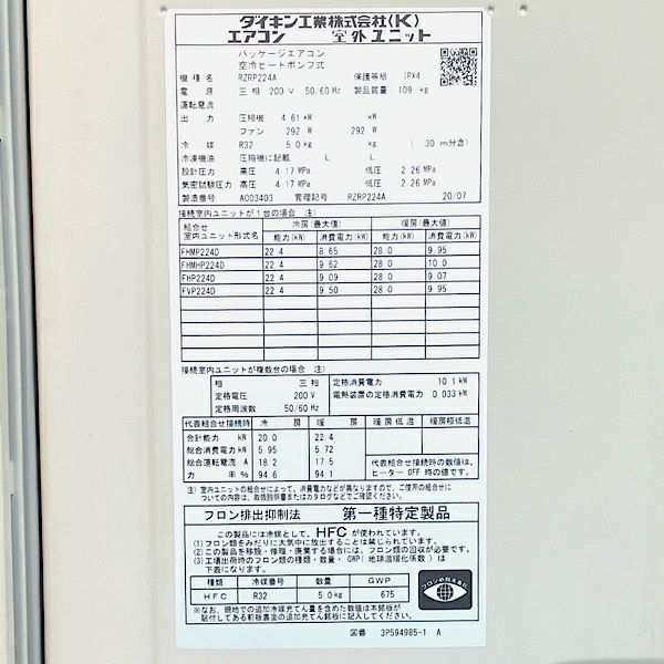 他の画像を見る 【引取限定・大阪吹田】ダイキン SZRV224A パッケージエアコン 床置型 8馬力 業務用エアコン 大阪店 引取限定! 中古品(B) 販売価格 ¥ 286,000 税込 カートに入れる お気に入りに登録する