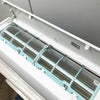 清掃済みですが中古品ですのでキズや取り切れない汚れ、フィンの曲がりがあります。室内機はカバーを取り外し洗浄、室外機も洗浄済です。付属品は室内機、室外機、背面パネル、リモコンです。