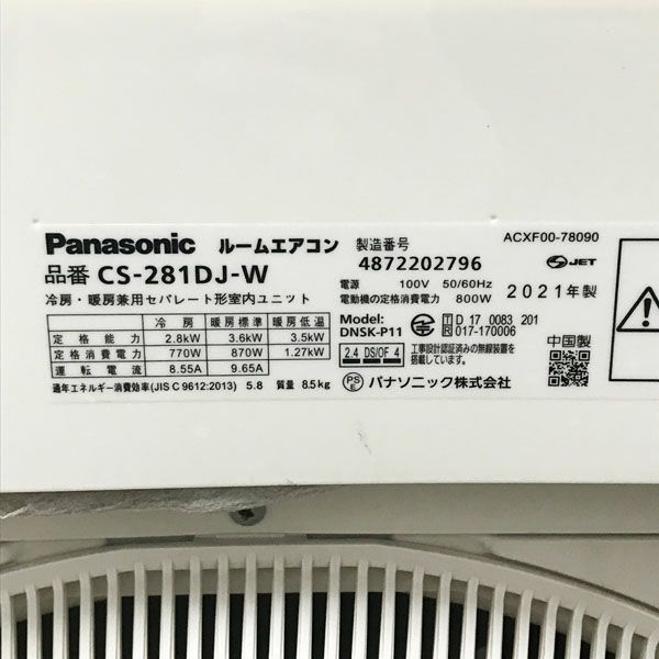 他の画像を見る Panasonic/パナソニック 2.8kW 10畳 ルームエアコン CS-J283D-W 2023年 大阪店 引取限定! 中古品(B) 販売価格 ¥ 36,300 税込 在庫切れ 詳細を見る お気に入りに登録する