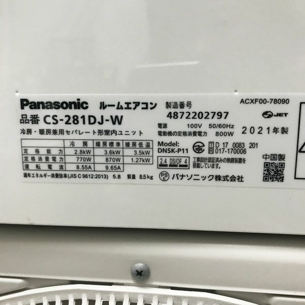 他の画像を見る Panasonic/パナソニック 2.8kW 10畳 ルームエアコン Eolia/エオリア CS-281-DJ-W 2021年 大阪店 引取限定! 中古品(B) 販売価格 ¥ 33,000 税込 在庫切れ 詳細を見る お気に入りに登録する