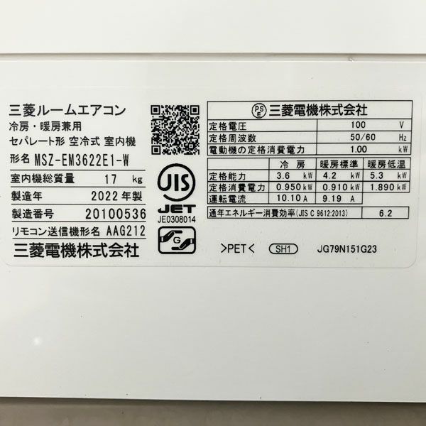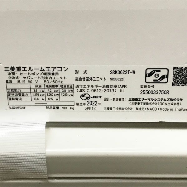 他の画像を見る MITSUBISHI/三菱 3.6kW 12畳 ルームエアコン SRK-3622T-W 2022年 大阪店 引取限定! 中古品(B) 販売価格 ¥ 46,200 税込 在庫切れ 詳細を見る お気に入りに登録する