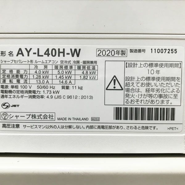 他の画像を見る SHARP/シャープ 4.0kW 14畳 ルームエアコン AY-L40H-W 2020年 大阪店 引取限定! 中古品(B) 販売価格 ¥ 48,400 税込 在庫切れ 詳細を見る お気に入りに登録する
