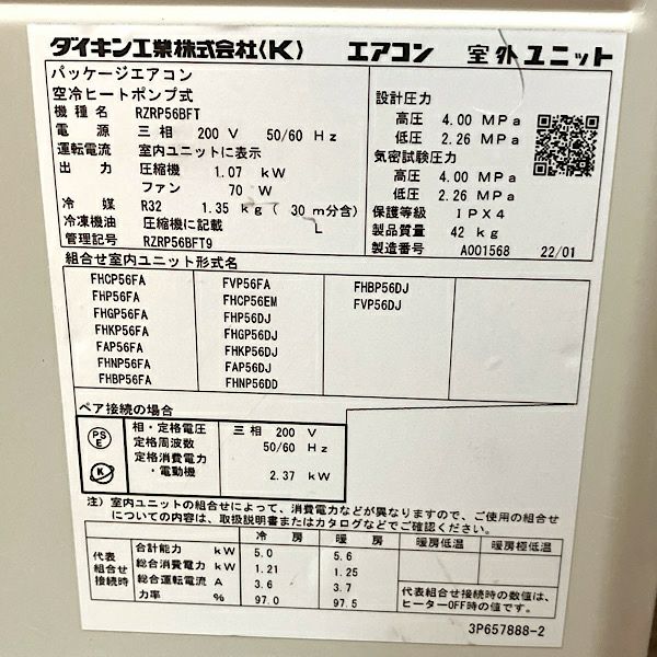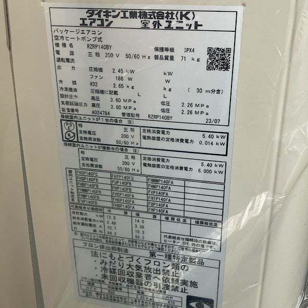 他の画像を見る ダイキン パッケージエアコン 天吊自在型 5馬力 FUP140FB 室外機RZRP140BY 三相200V 2023年製 大阪店 引取限定! 未使用品(AA) 販売価格 ¥ 220,000 税込 カートに入れる お気に入りに登録する