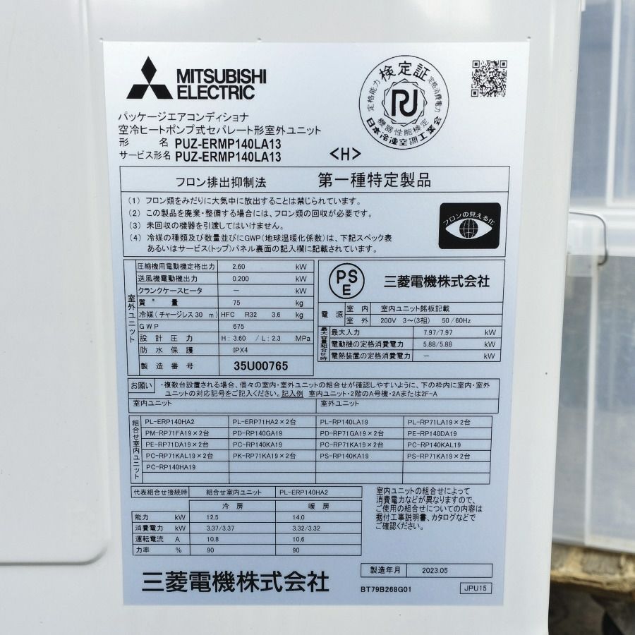他の画像を見る 三菱電機 PCZ-ERMP140K3 2023年製 5馬力 天吊エアコン ワイヤード PC-RP140KA19/PUZ-ERMP140LA13 愛知店 中古品(A) 販売価格 ¥ 198,000 税込 在庫切れ 詳細を見る お気に入りに登録する