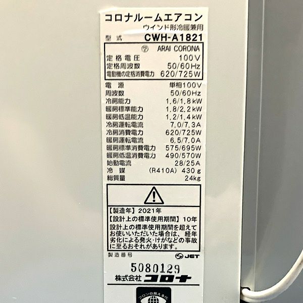 他の画像を見る CORONA/コロナ 50/60Hz:1.6/1.8kW ウインドエアコン 冷暖房兼用タイプ 4.5~7畳 CWH-A1821 2021年 ※本体のみ※ 大阪店 中古品(B) 販売価格 ¥ 41,800 税込 在庫切れ 詳細を見る お気に入りに登録する
