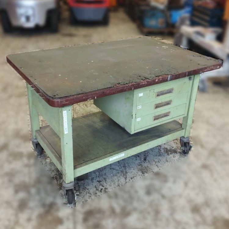 キャスター、引き出し付きの使い勝手のいい作業台ですが、