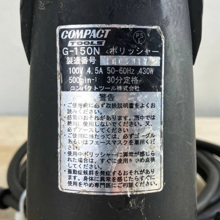 他の画像を見る COMPACT TOOL/コンパクト・ツール G-150N 電動ギアアクションポリッシャー(4) 愛知店 中古品(C) 販売価格 ¥ 25,300 税込 カートに入れる お気に入りに登録する