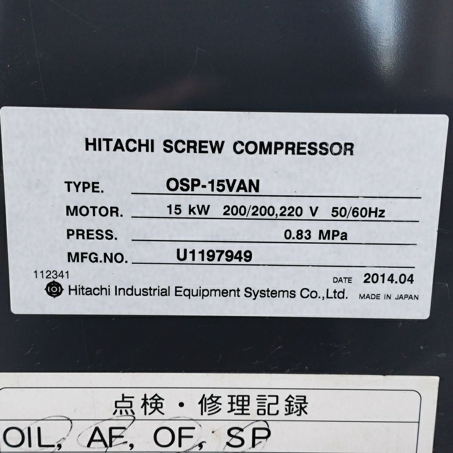 他の画像を見る 日立 OSP-15VAN 20馬力 15kW スクリューコンプレッサー エアコンプレッサ 50/60Hz共用 愛知店 中古品(B) 販売価格 ¥ 440,000 税込 在庫切れ 詳細を見る お気に入りに登録する