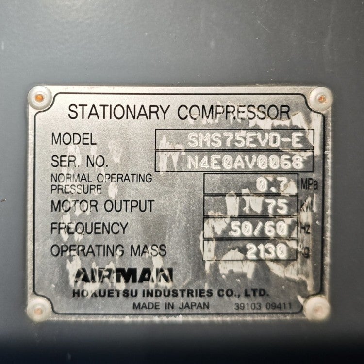 他の画像を見る [配送は要相談]AIRMAN/エアマン/北越工業 SMS75EVD-E 75kW/100馬力 インバータ制御仕様 屋外設置型スクリュコンプレッサ 愛知店 引取限定! 中古品(B) 販売価格 ¥ 3,300,000 税込 カートに入れる お気に入りに登録する