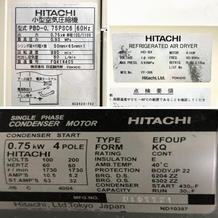 他の画像を見る HITACHI/日立 PBD-0.75PSC6 0.75kW/1馬力 パッケージコンプレッサー 60Hz ドライヤー内蔵型 1348.8h 愛知店 中古品(B) 販売価格 ¥ 132,000 税込 カートに入れる お気に入りに登録する