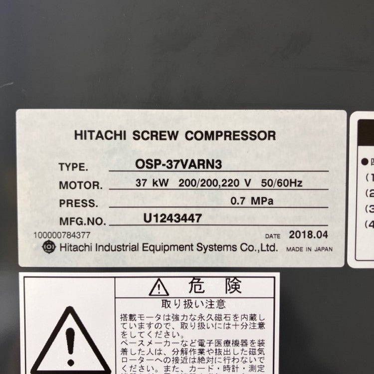 他の画像を見る [配送は要相談]HITACHI/日立産機 OSP-37M6ARN3 37kW/50馬力スクリューコンプレッサー ドライヤ内蔵 60Hz 愛知店 引取限定! 中古品(B) 販売価格 ¥ 990,000 税込 カートに入れる お気に入りに登録する