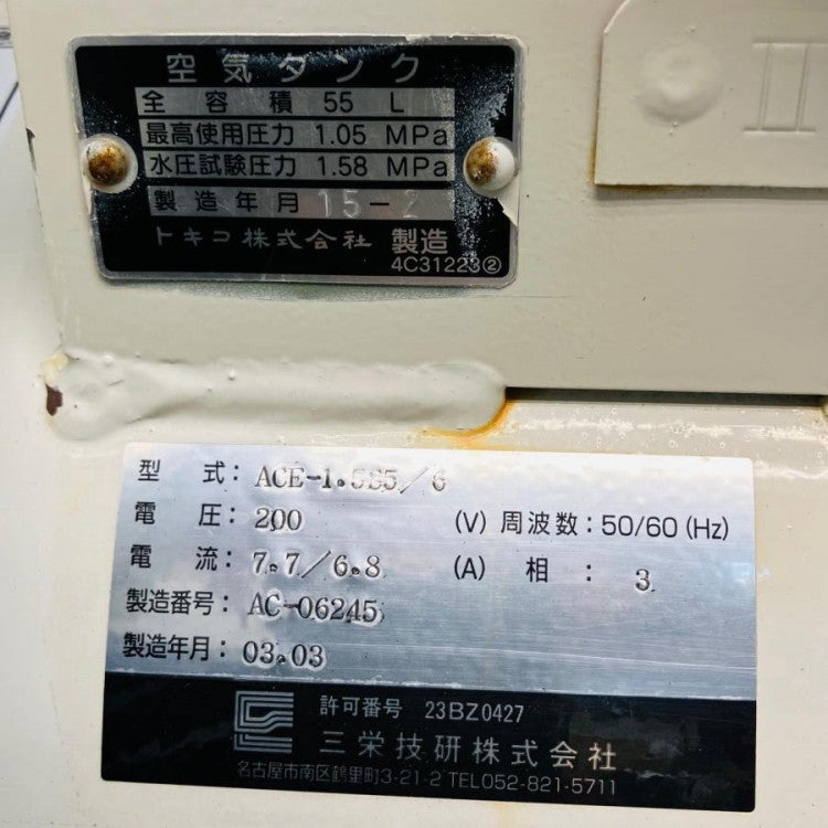 他の画像を見る SANEI/三栄技研 ACE-1.5S5/6 1.5kW 2馬力 オイルフリーレシプロコンプレッサー 愛知店 中古品(C) 販売価格 ¥ 66,000 税込 カートに入れる お気に入りに登録する