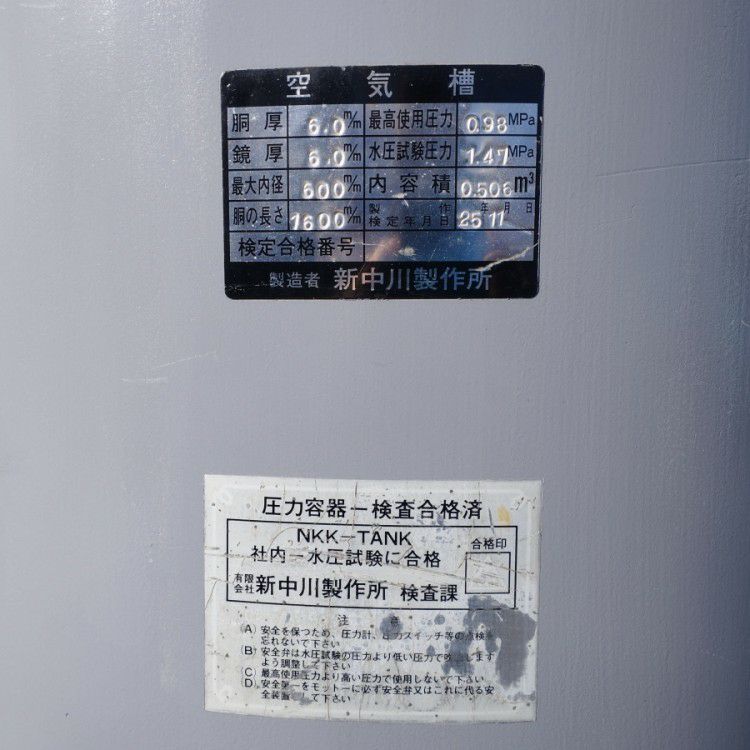 他の画像を見る [引取限定]新中川製作所 500L サブタンク エアタンク 補助タンク 0.98MPa 愛知店 引取限定! 中古品(B) 販売価格 ¥ 220,000 税込 カートに入れる お気に入りに登録する