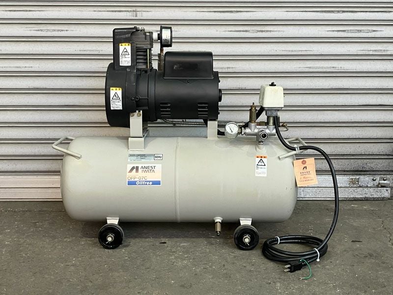 アネスト岩田 0.75kW 1馬力 オイルフリーレシプロコンプレッサー OFP-07C 60Hz専用 単相100V