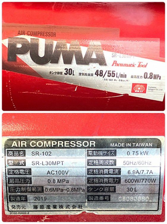 他の画像を見る SK11/藤原産業 0.75kW 1馬力 エアーコンプレッサー SR-102 SR-L30MPT 50/60Hz対応 オイルフリー 大阪店 中古品(B) 販売価格 ¥ 18,700 税込 カートに入れる お気に入りに登録する