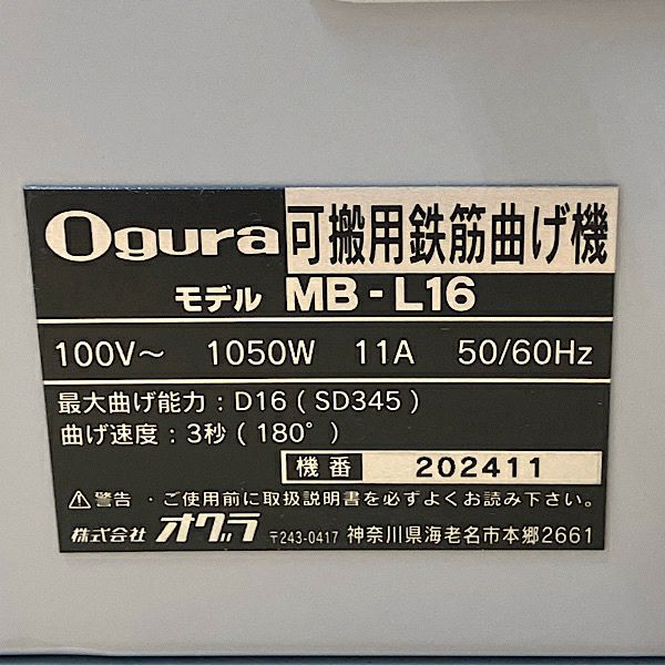 他の画像を見る Ogura/オグラ 鉄筋ベンダー 16mm MB-L16 可搬用鉄筋曲げ機 バーベンダー 大阪店 送料無料!(沖縄離島除く) 未使用品(AA) 販売価格 ¥ 198,000 税込 在庫切れ 詳細を見る お気に入りに登録する