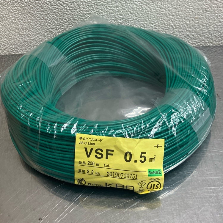 3. KHD VSF 0.5 ビニルコード 単心 200m 緑色
