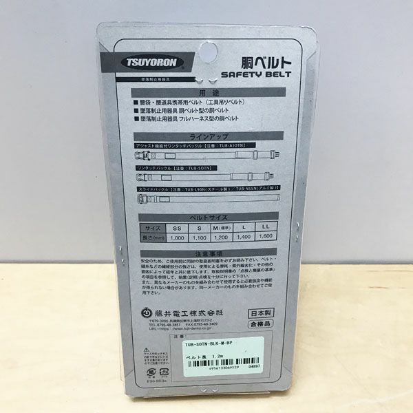 他の画像を見る FUJII-DENKO/藤井電工 ツヨロン TUB-SOTN-BLK-M-BP Mサイズ 落下防止用器具 胴ベルト型 安全帯 大阪店 送料無料!(沖縄離島除く) 中古品(A+) 販売価格 ¥ 4,290 税込 在庫切れ 詳細を見る お気に入りに登録する