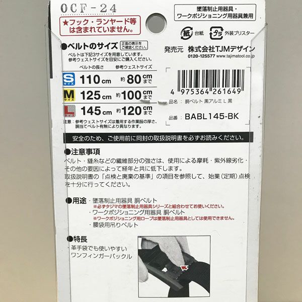 他の画像を見る タジマ/Tajima 安全帯 胴ベルト 黒アルミスライド Lサイズ BABL145-BK 大阪店 送料無料!(沖縄離島除く) 未使用品(AA) 販売価格 ¥ 3,520 税込 在庫切れ 詳細を見る お気に入りに登録する