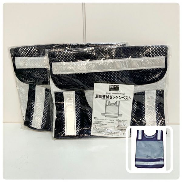 3. 【未開封品】TRUSCO/トラスコ ベスト 2枚組 肩調整付 TMNV-B ゼッケンベスト メッシュ紺 A4用紙が前後両面入る