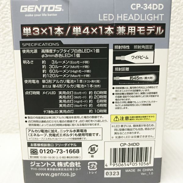 他の画像を見る GENTOS/ジェントス CP-34DD LED ヘッドライト 単3形アルカリ電池×1本 または 単4形アルカリ電池×1本 大阪店 送料無料!(沖縄離島除く) 未使用品(AA) 販売価格 ¥ 2,640 税込 カートに入れる お気に入りに登録する