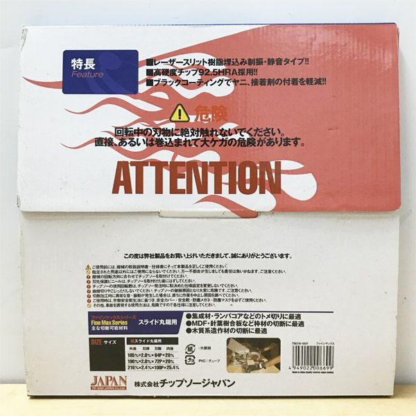他の画像を見る チップソージャパン FINEMAX/ファインマックス TM216-100F スライド丸鋸用 大阪店 送料無料!(沖縄離島除く) 未使用品(AA) 販売価格 ¥ 4,620 税込 カートに入れる お気に入りに登録する