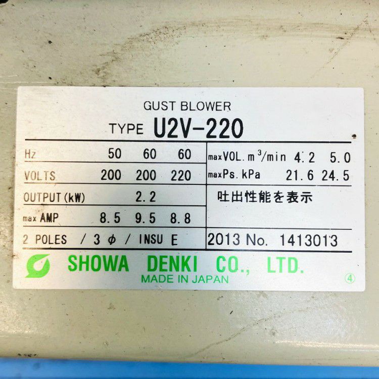 他の画像を見る SHOWA/昭和電機 U2V-220 電動送風機 ブロワー 渦流式高圧シリーズ ガストブロア 愛知店 中古品(C) 販売価格 ¥ 27,500 税込 カートに入れる お気に入りに登録する