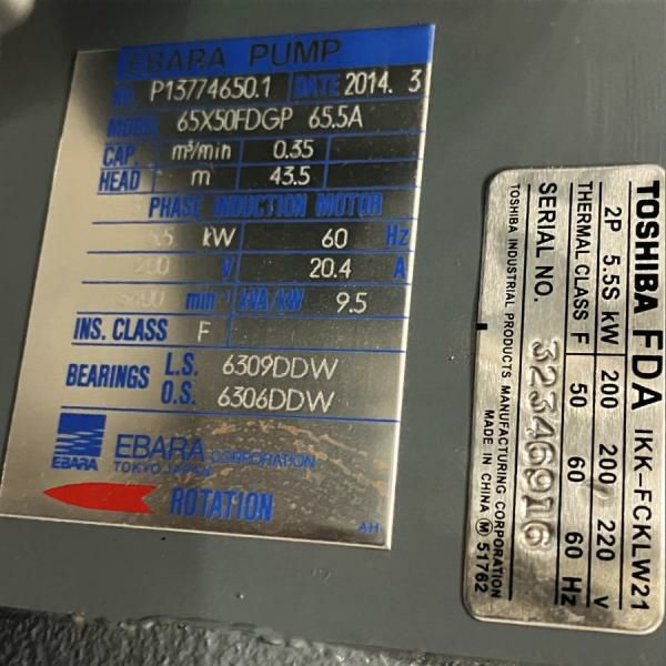 他の画像を見る EBARA/エバラ/荏原製作所 65X50FS2F63.7E 60Hz 陸上片吸込み渦巻きポンプ FS型 陸上ポンプ 渦巻ポンプ 愛知店 未使用品(AA) 販売価格 ¥ 66,000 税込 在庫切れ 詳細を見る お気に入りに登録する