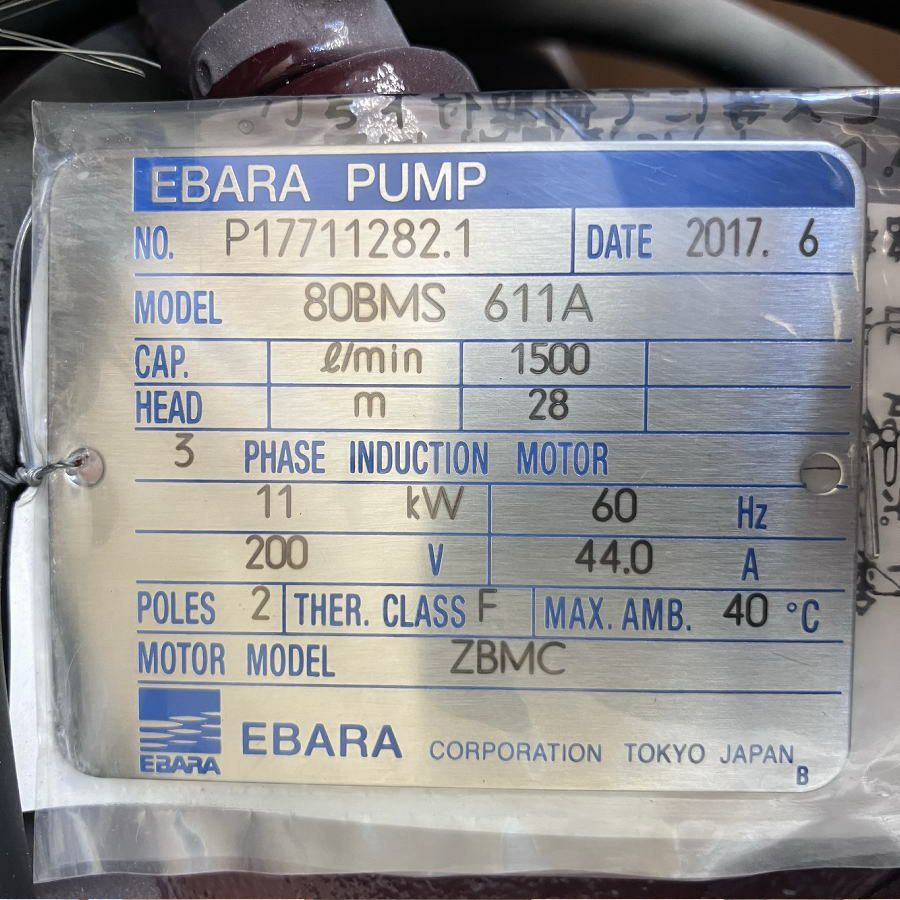 他の画像を見る エバラ 荏原製作所 80BMS611A 水中渦巻ポンプ BMS型 60Hz 口径80mm 愛知店 未使用品(AA) 販売価格 ¥ 330,000 税込 カートに入れる お気に入りに登録する