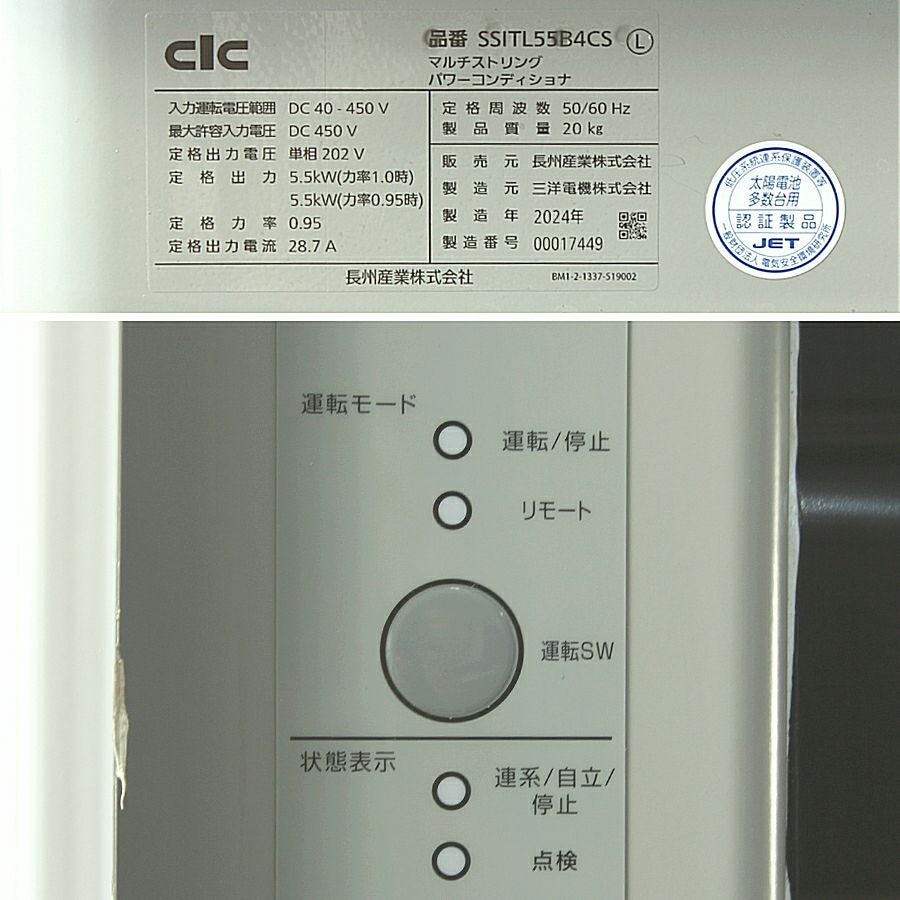 他の画像を見る 長州産業/CIC SSITL55B4CS/MCSM-P05/RC-305 パワーコンディショナー/電力検出ユニット/リモコン 2023/2024年製 愛知店 中古品(B) 販売価格 ¥ 55,000 税込 在庫切れ 詳細を見る お気に入りに登録する