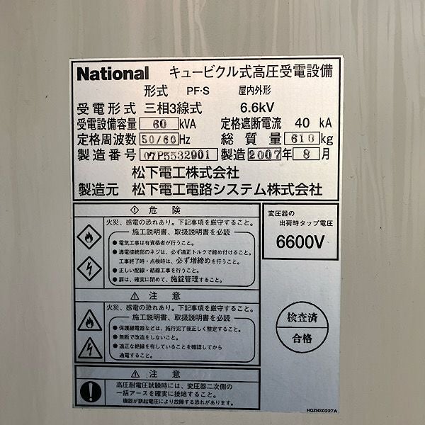 他の画像を見る 【引取限定・大阪吹田】ナショナル キュービクル式高圧受電設備 PF・S形 60kVA 50Hz/60Hz 2007年製 中古品 大阪店 引取限定! 中古品(B) 販売価格 ¥ 99,000 税込 在庫切れ 詳細を見る お気に入りに登録する