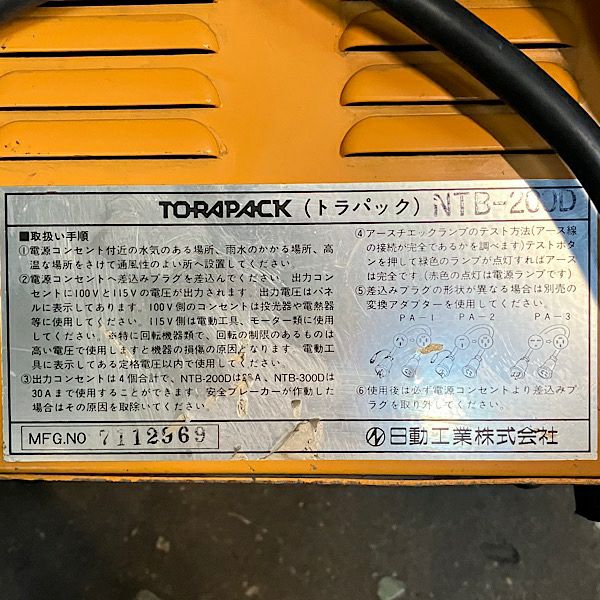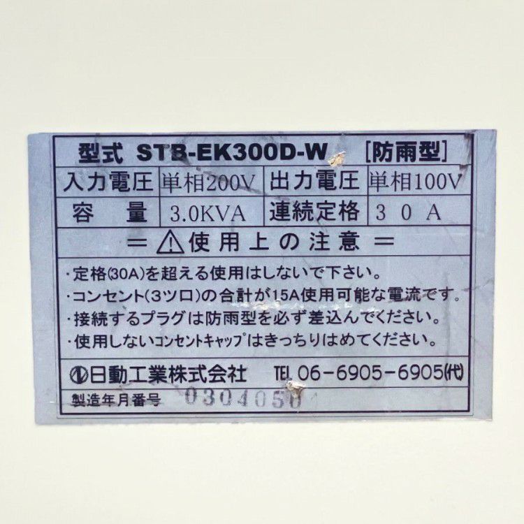 他の画像を見る 日動工業 降圧専用トランス 変圧器 NTB-200D アースチェック機能付 2KVA 200V ●124589 大阪店 中古品(B) 販売価格 ¥ 19,800 税込 在庫切れ 詳細を見る お気に入りに登録する