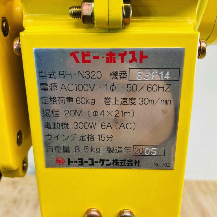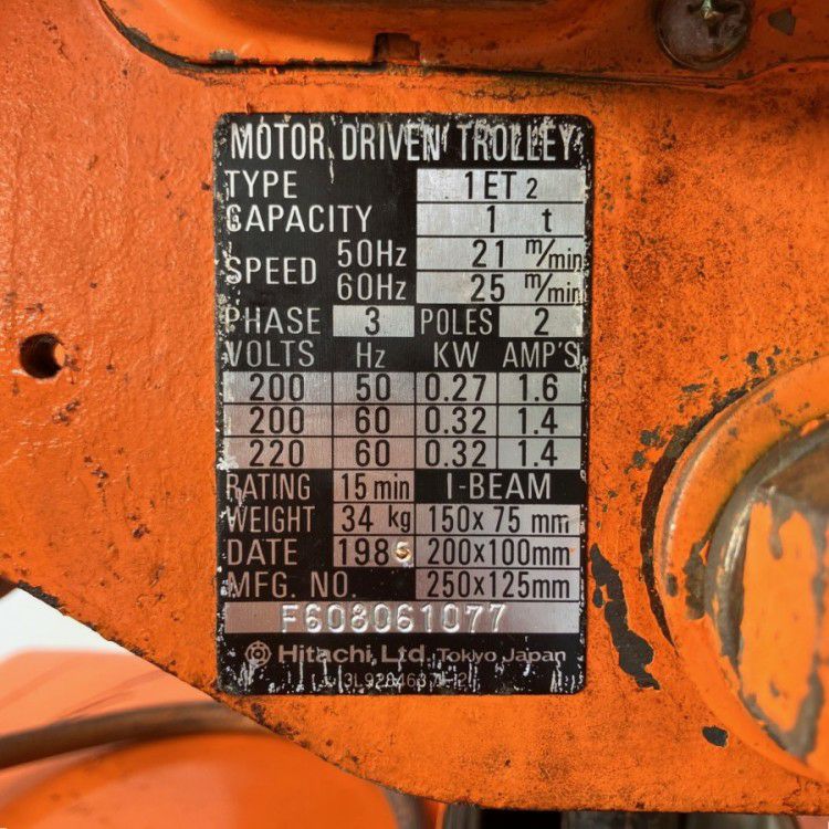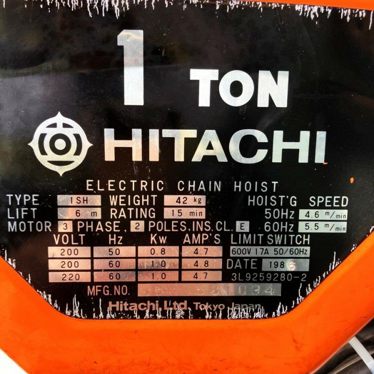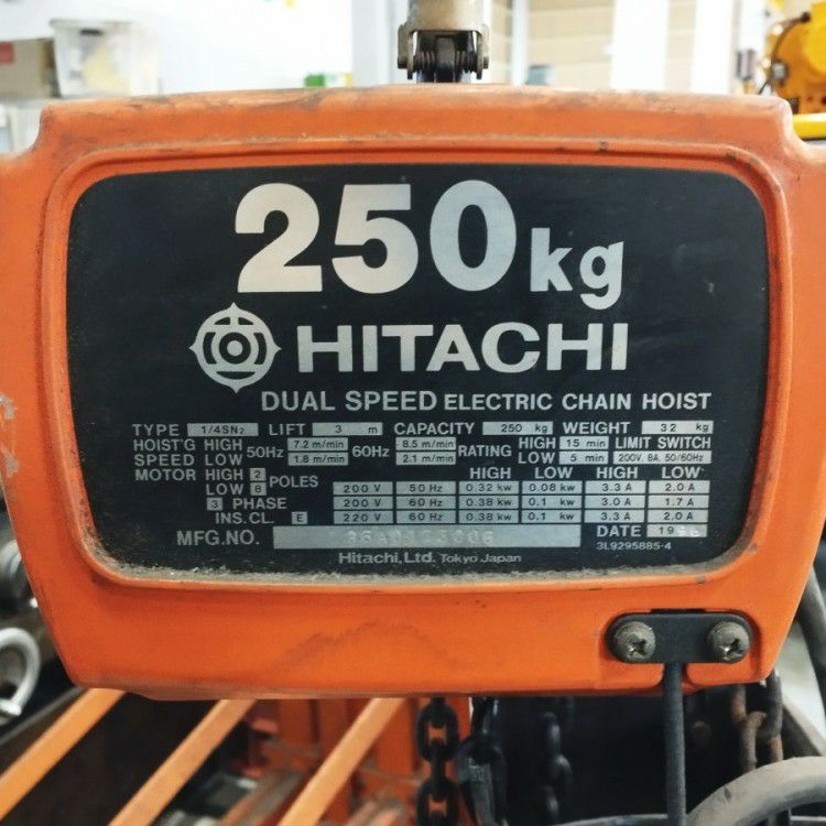 他の画像を見る 日立/HITACHI 電動チェーンブロック 1t 9m 1FH 電動トロリ 1ET2 三相200V 大阪店 中古品(B) 販売価格 ¥ 143,000 税込 在庫切れ 詳細を見る お気に入りに登録する
