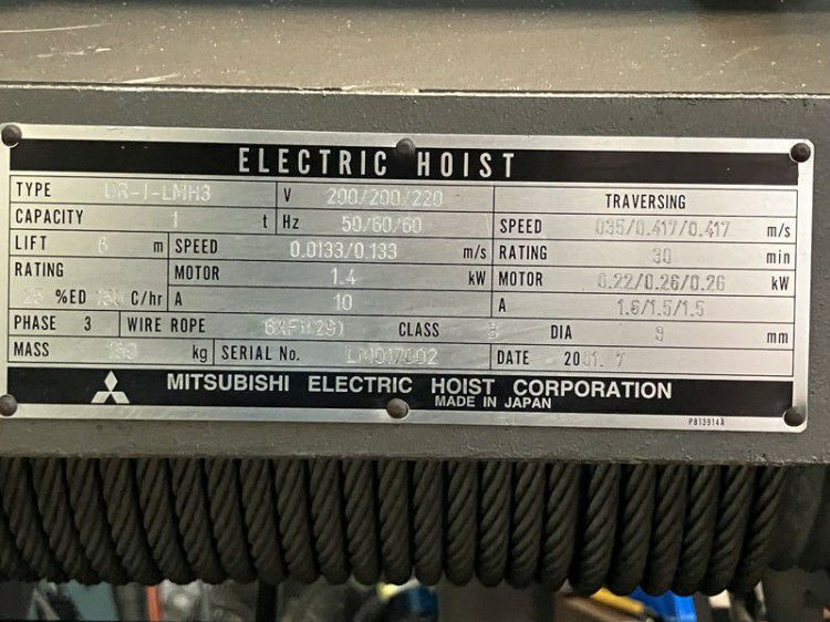 他の画像を見る MITSUBISHI/三菱 1t 6m 電動ホイスト UR-1-LMH3 2001年製 天井クレーン インバーター式 大阪店 中古品(B) 販売価格 ¥ 253,000 税込 カートに入れる お気に入りに登録する