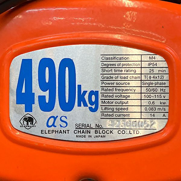 他の画像を見る 象印 490kg 3m αs-049 懸垂式小型電気チェーンブロック 一速型 単相100V 大阪店 中古品(B) 販売価格 ¥ 66,000 税込 在庫切れ 詳細を見る お気に入りに登録する