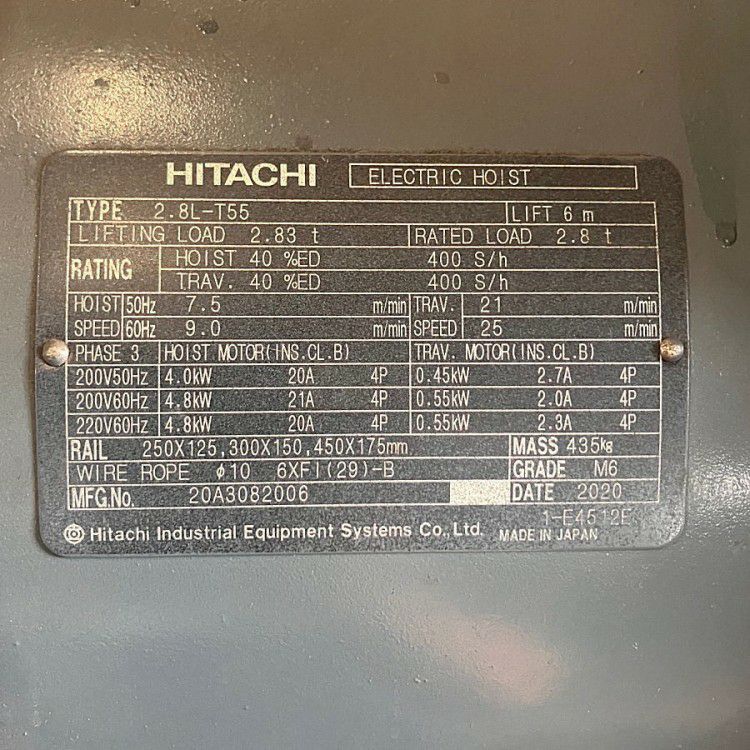 他の画像を見る HITACHI/日立 2.8L-T55 2.8t 天井クレーン ローヘッド型 揚程6m 愛知店 中古品(B) 販売価格 ¥ 495,000 税込 在庫切れ 詳細を見る お気に入りに登録する