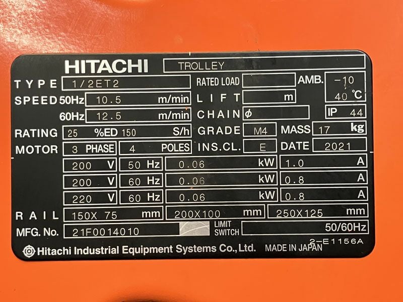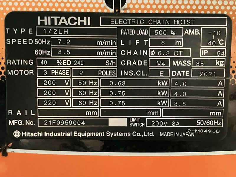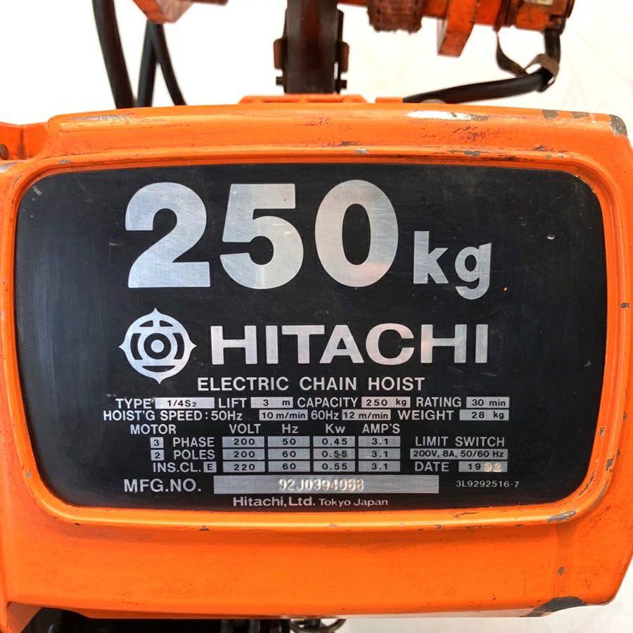 他の画像を見る HITACHI/日立 500kg 6m 電動チェーンブロック 電動トロリ付 1/2LH 1/2ET2 大阪店 中古品(B) 販売価格 ¥ 88,000 税込 在庫切れ 詳細を見る お気に入りに登録する